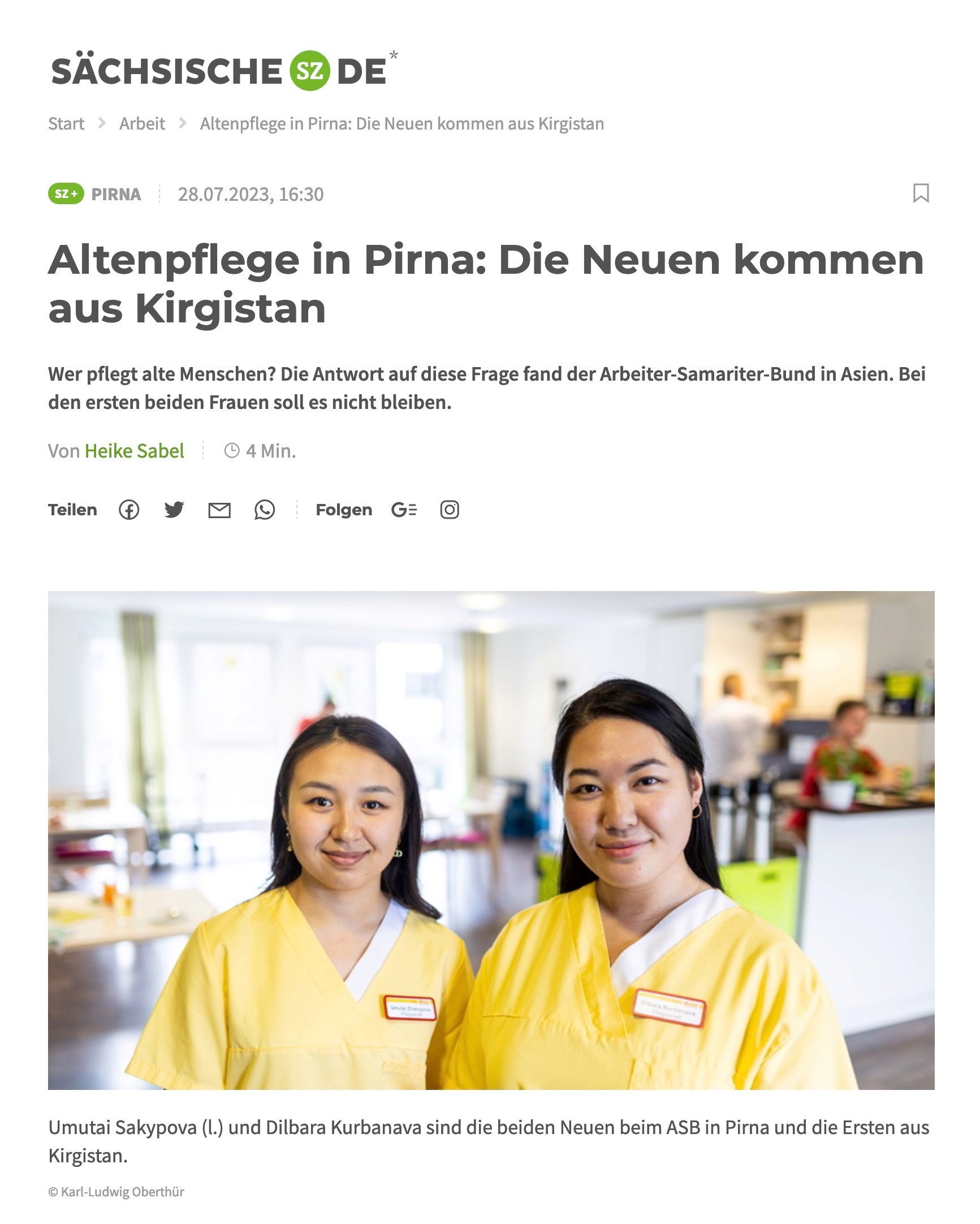 Статья о наших кыргызских специалистах в Германии в немецкой газете "Sächsische Zeitung"